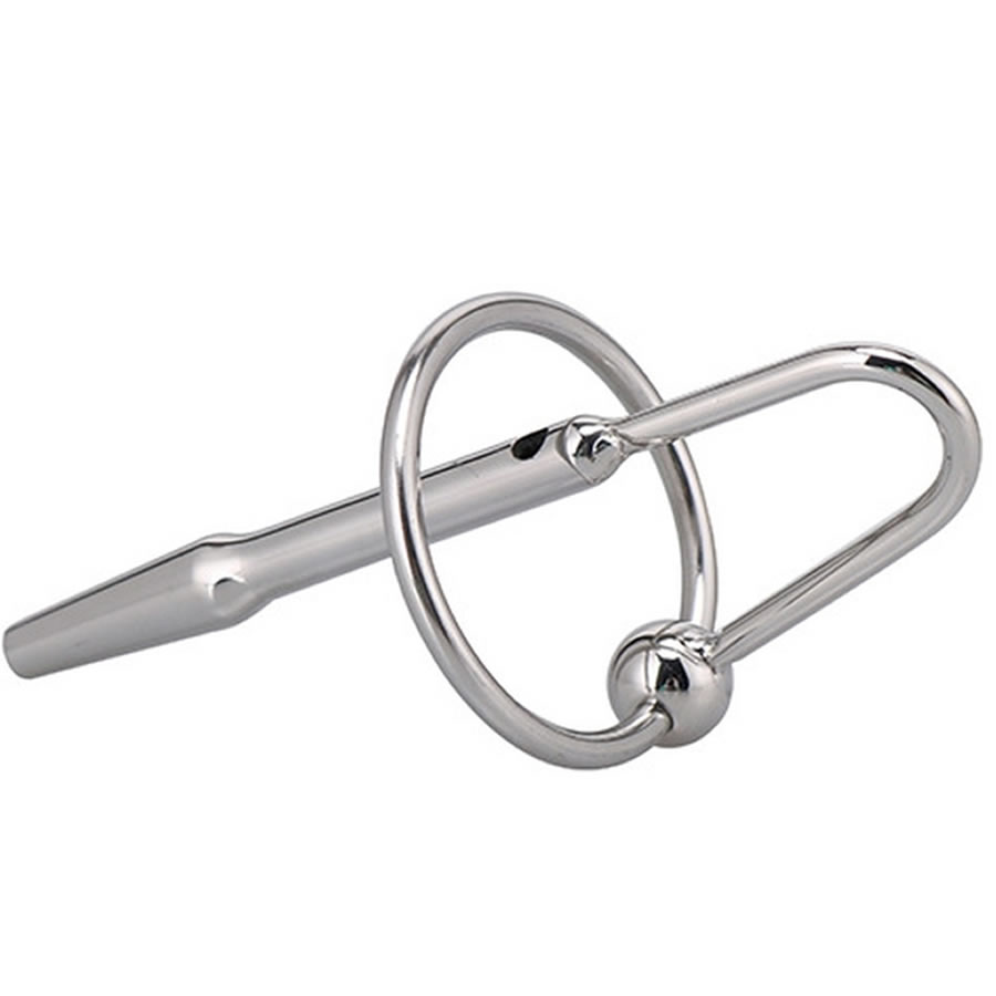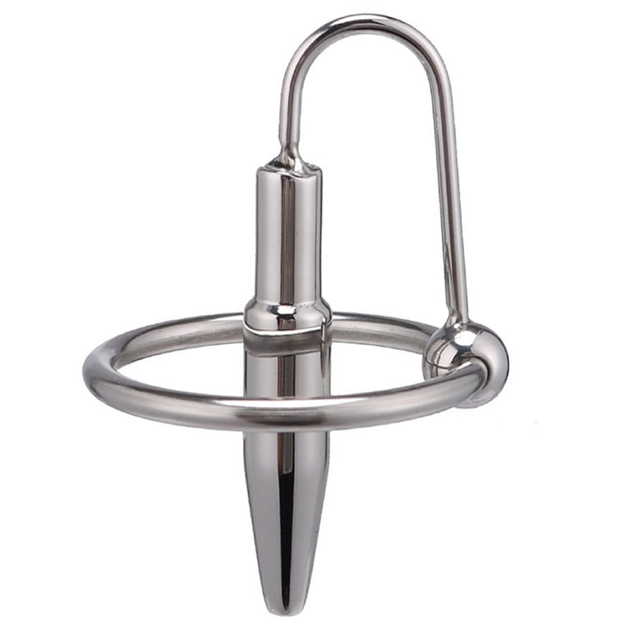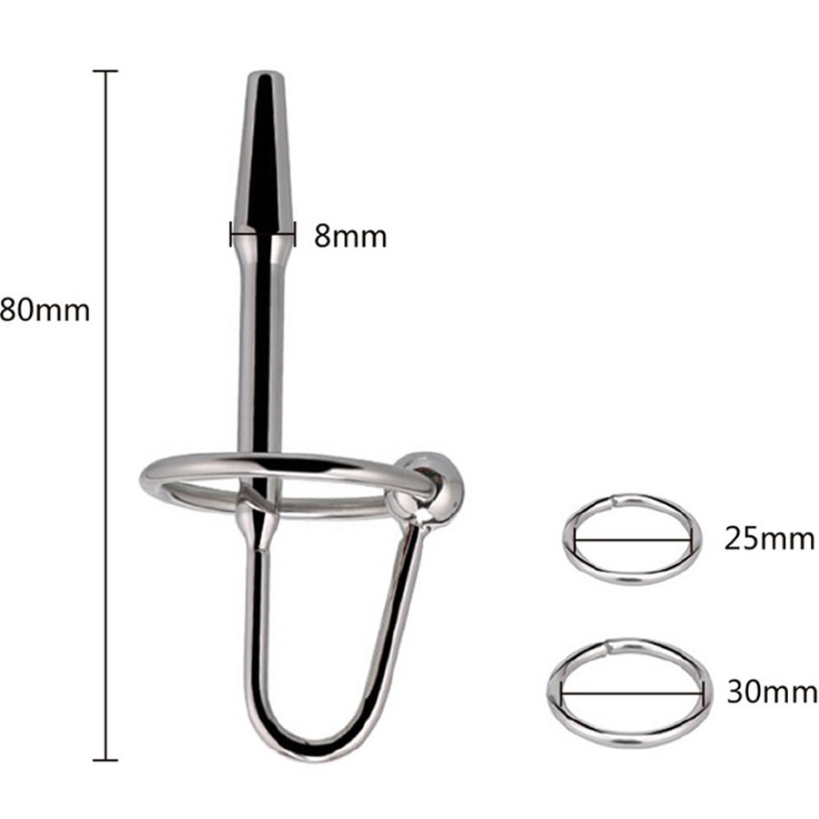 Kratek, kovinski čep za penis je pritrjen na obroček za frenulum. Čep ni votel. Priložena sta dva obročka, premer manjšega obročka je 2,7 cm, premer večjega je 3 cm.