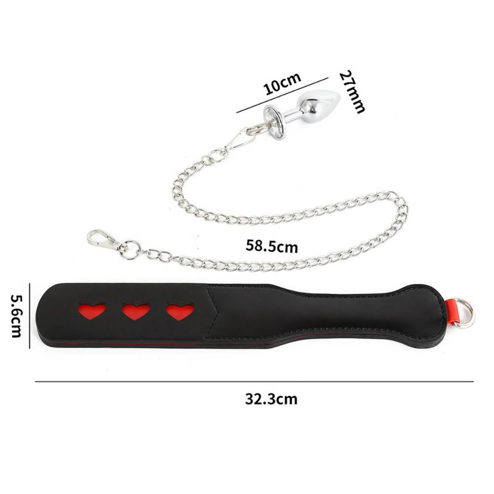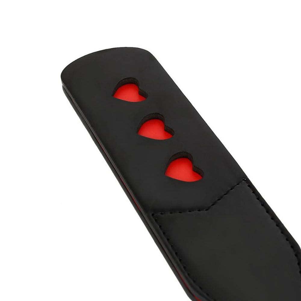 Ploščat bič za šeškanje iz dveh ločenih slojev umetnega usnja. Za elegantnejši izgled je en sloj okrašen s tremi srčastimi izrezi, spodnja plast v rdeči barvi pa ta izgled poudarja. Biču je dodan kovinski analni čep, ki se ga z verigo pripne na ročaj. Veriga ima na vsaki strani karabin, ki omogoča, da se jo lahko povsem odpne in bič in analni čep uporablja kot ločen, samostojen izdelek.
