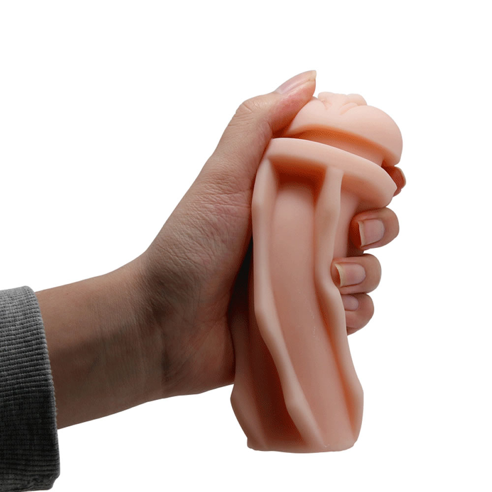 Mehak masturbacijski rokav z vaginalnim vhodom vstavljen v čvrst valj za več intenzitet užitka.