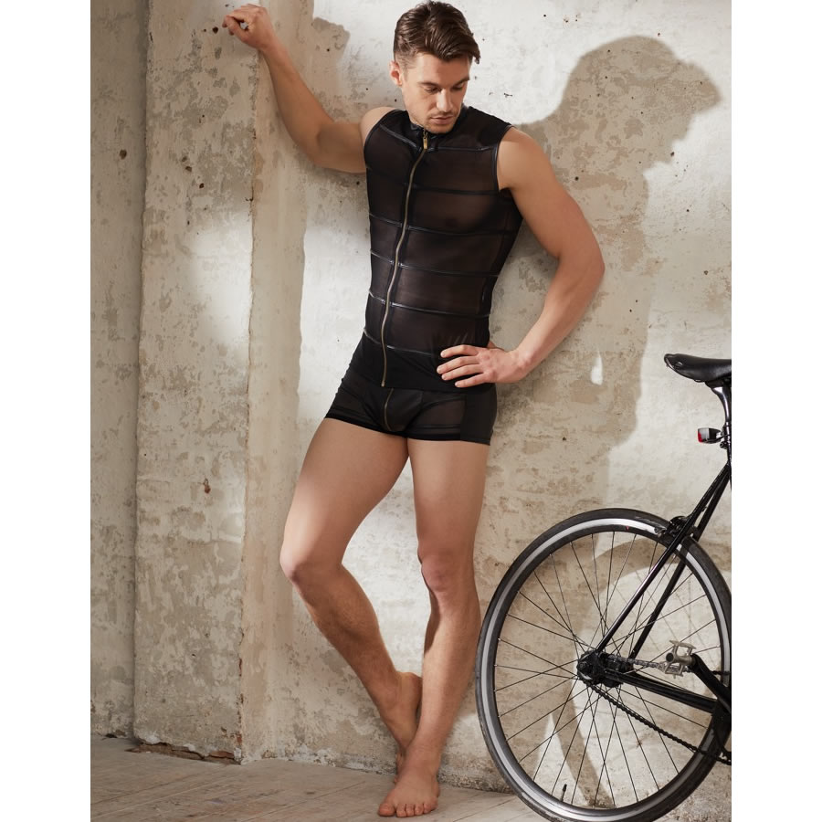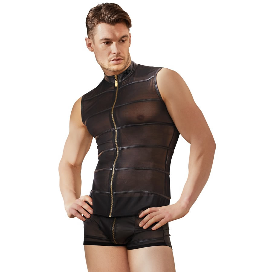 Prosojna moška majica z zadrgo