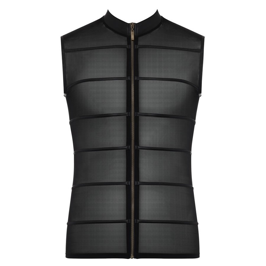 Pokaži svoje mišice saj jih bo ta prosojna majica brez rokavov postavila v center pozornosti. Prosojen material prekinejo mat črte, ki dodajo nekaj vznemirljivosti oblačilu. Prosojna oprijeta majica ima visok ovratnik, z zadrgo na sprednji strani pajo lahko v trenutku razpreš.