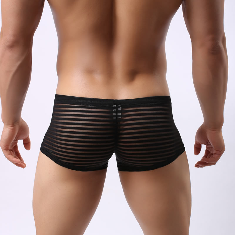 Elastične, oprijete moške bokserke, s črtastim vzorcem, izdelane iz prosojne tkanine, da se skozi njih vidi tvoje atribute.