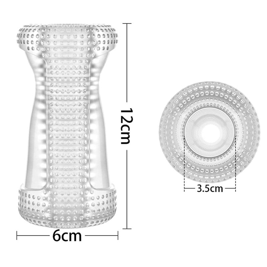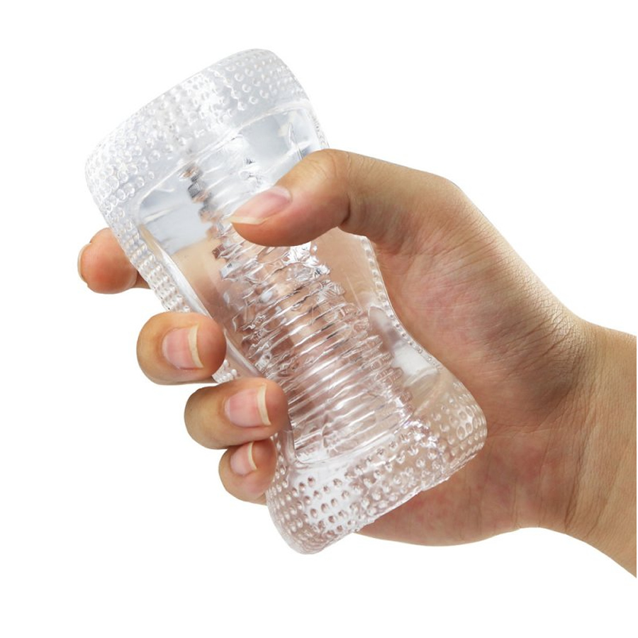 Ta prozoren masturbacijski rokav ti omogoča, da vidiš vso akcijo. Njegova površina je rebrasta, na drugi strani pa posuta z drobnimi bunkicami, da lahko uživaš v nežni ali bolj intenzivni stimulaciji – masturbator le obrneš na tisto stran, ki ti ustreza. Za gladko drsnje in več udobja nanesi zadostno količino lubrikanta.
