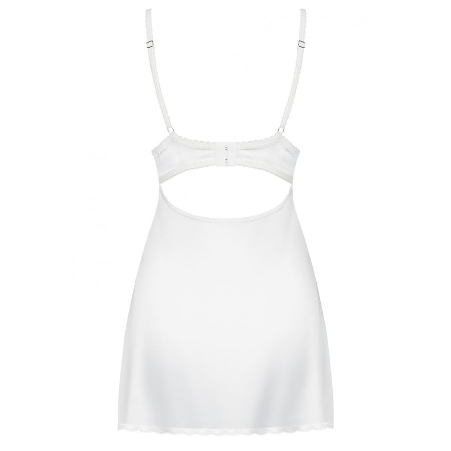 Čudovit negliže iz luksuznega, mehkega satena. Košarici sta oblikovani in podloženi, okrašeni s čudovito čipko. Med košaricama je satenasta pentlja z obeskom – perlo. Dolžina naramnic negližeja je prilagodljiva, da se popolnoma prilegajo. Hrbtni del negližeja ima kaveljček za zapenjanje in prosto padajoče krilo. Priložene so še ujemajoče tanga hlačke.