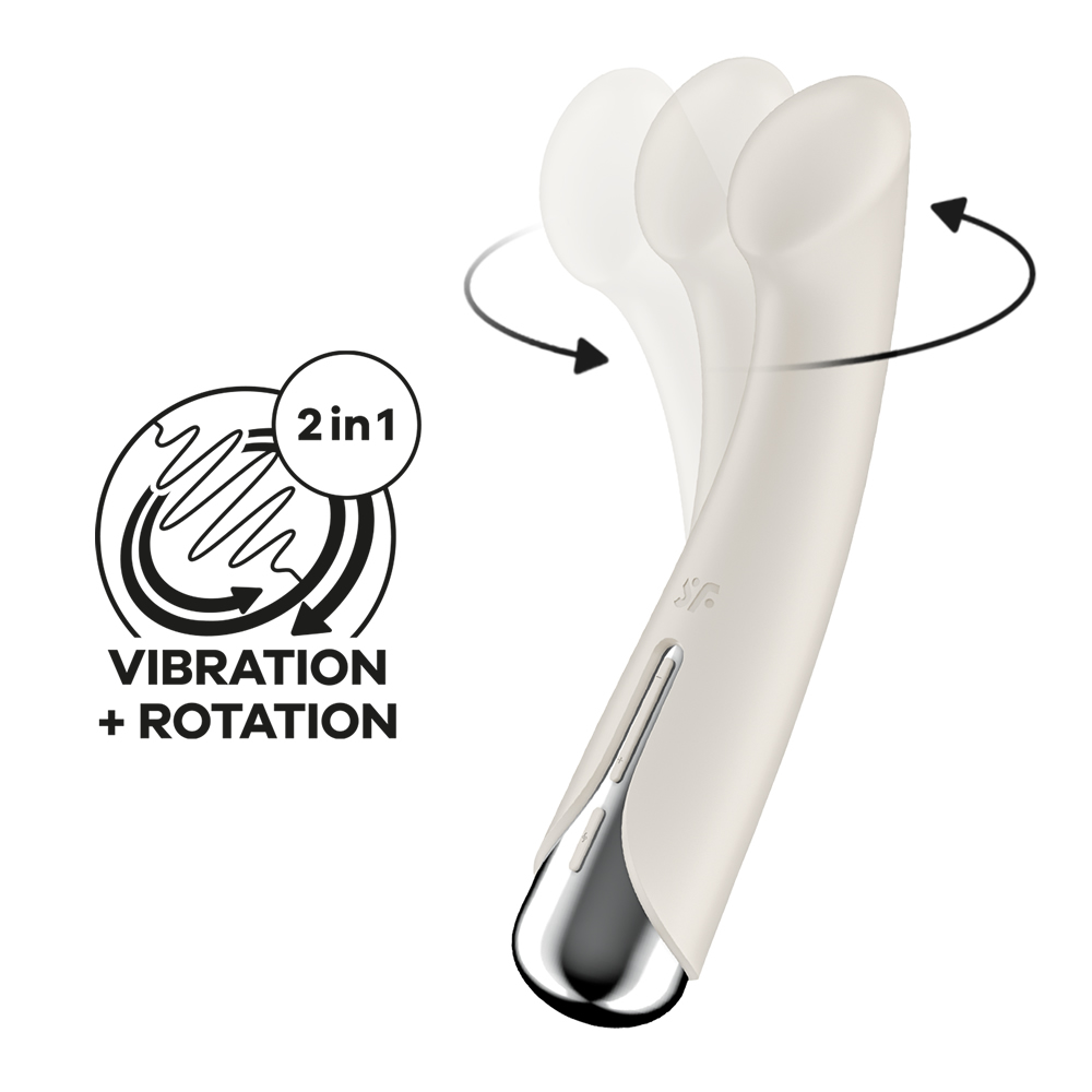 Poleg 12 različnih programov vibriranja ima ta čudovito oblikovana erotična igrača dodano še funkcijo vrtenja, ki draži vašo sladko vaginalno točko. Vrteče se ritmično gibanje v kombinaciji s sploščeno konico vibratorja zagotavlja popolno stimulacijo G-točke. Hitrost in smer izberete sami saj Satisfyer Spinning G-Spot 1 ponuja 5 različnih programov vrtenja, ki spreminjajo smer z dvojnim klikom na gumb za vrtenje. Prav tako se lahko sami odločite, ali želite kombinirati vrtenje in vibriranje ali ju uporabljati ločeno, saj lahko oba programa upravljate neodvisno – z gumbi na sprednji strani enostavno in intuitivno izberete programe, ki so vam najbolj všeč.