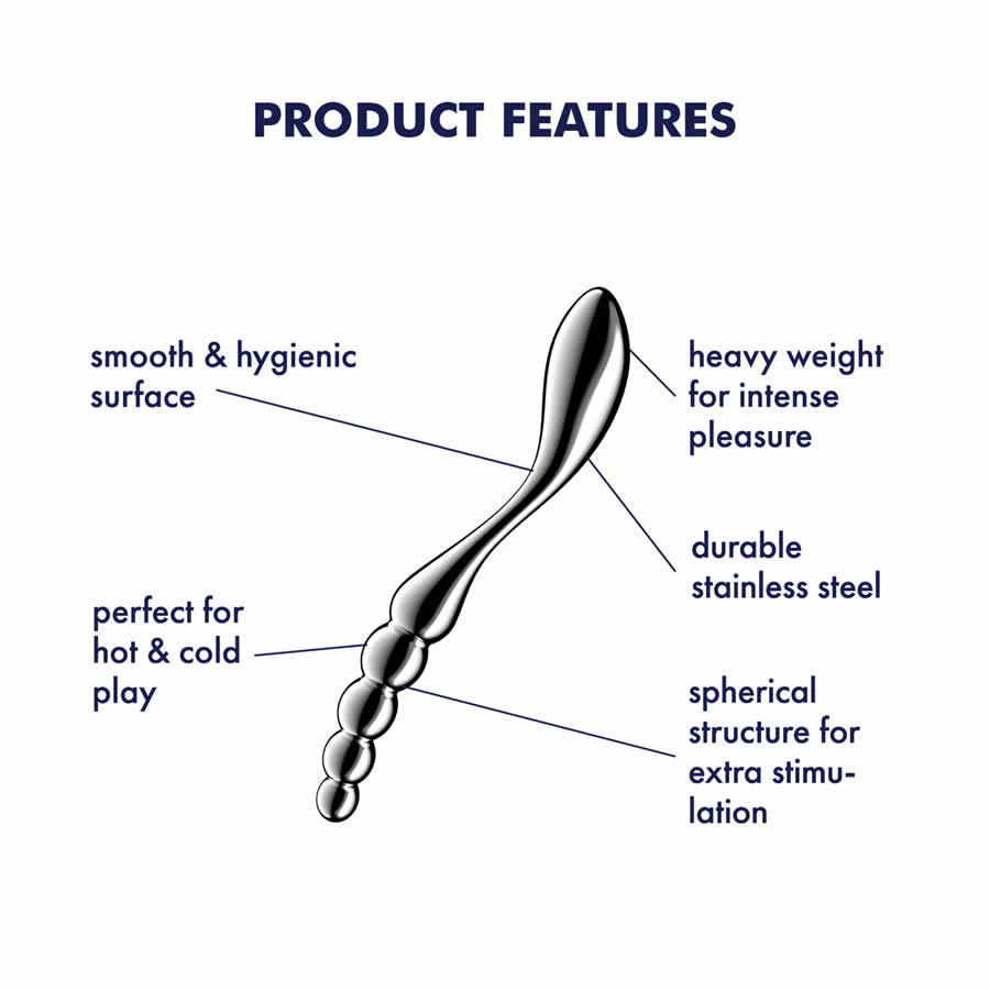 S tem jeklenim dildom ti ni treba močno pritiskati, saj že sama teža zagotavlja intenzivno stimulacijo – kako nežen ali čuten bo postalo, je odvisno od tebe!