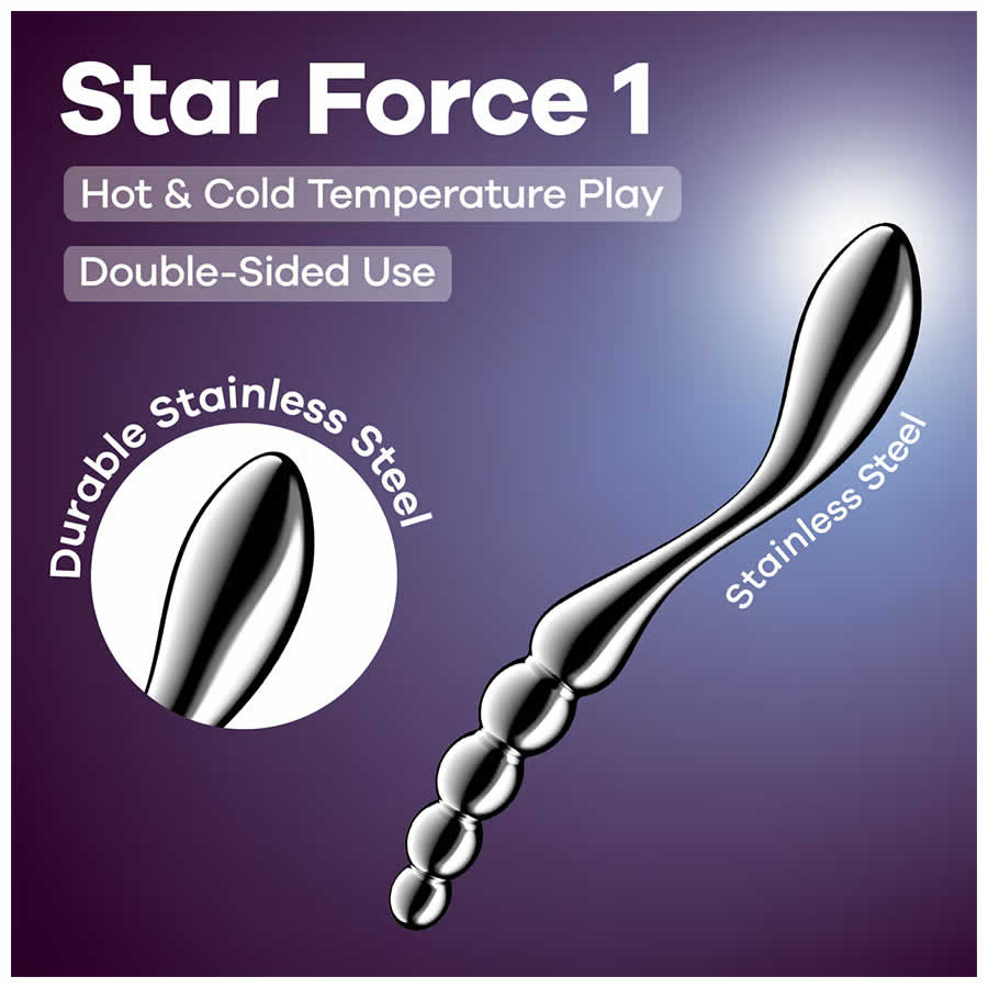 Star Force 1 te vabi, da raziščeš galaksijo strasti. Na enem koncu jekleni dildo v obliki črke S ponuja širok, gladek ud, ki ciljno stimulira tvojo točko G. Na drugem koncu se nahaja kroglasta struktura, ki z vsakim gibom ustvarja valove strasti in ritmične intenzivnosti, ki se sčasoma stopnjujejo.