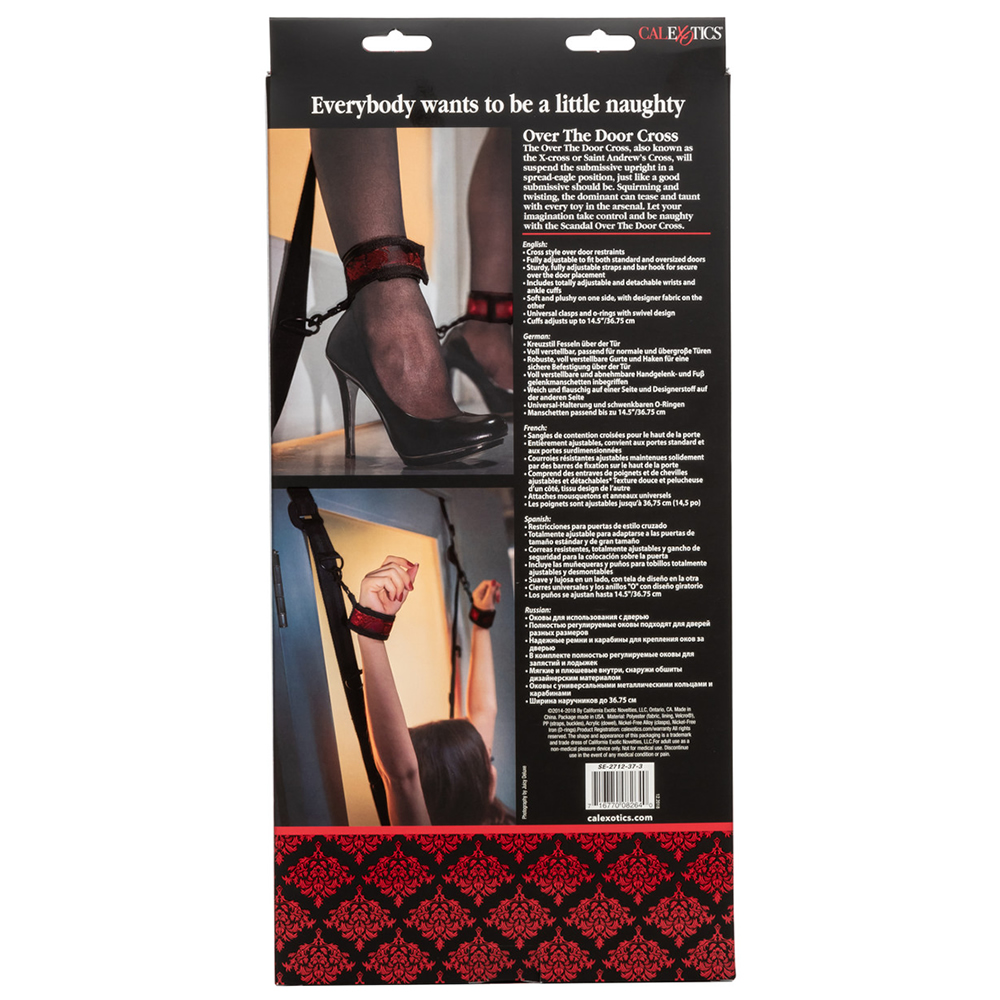 Nocoj zaveži svojega ljubimca in izpolni vsako njegovo željo s Scandal križem, ki se ga namesti na vrata. Namestitev križa in priprava na začetek traja le nekaj trenutkov. Preprosto vrzi robustne palice čez vrata, pripni partnerjeva zapestja in gležnje v križ in občuduj njegovo izpostavljeno in ranljivo telo. Vsak centimeter njegove kože bo tvoj za raziskovanje ne glede na to ali je tvoj okus sladek in čuten ali pa ti uspeva premikanje meja.
