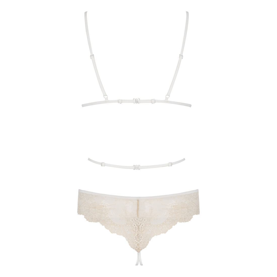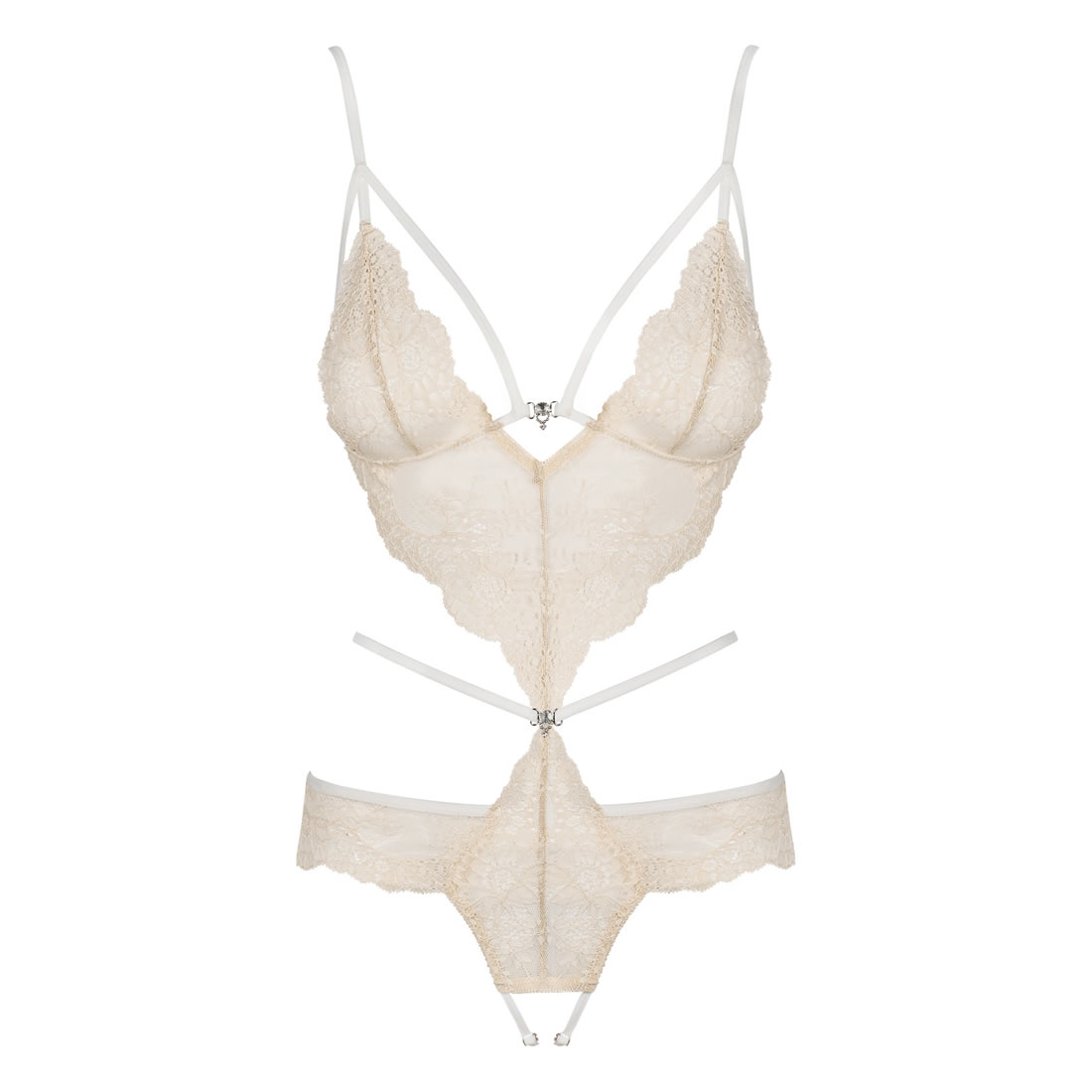 Ta bodi je kombinacija delikatne bež čipke in trakkov, ki poudarjajo telo. Svetlikajoči diamantki dodajo sijaj in eleganco, seksi krojenje pa vabi s seksualnostjo. Izpostavljen hrbet in trebuh vzpodbudijo prijetne trenutke s tvojo drugo polovico.