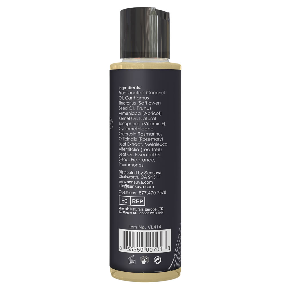 Sestavine/Ingredients: Fractionated Coconut Oil, Carthamus Tinctorius (Safflower) Seed Oil, Prunus Armeniaca (Apricot) Kernel Oil, Natural Tocopherol (Vitamin E), Cyclomethicone, Oleoresin Rosmarinus Officinalis (Rosemary) Leaf Extract, Melaleuca Alternifolia (Tea Tree) Leaf Oil, Essential Oil Blend, Fragrance, Pheromones