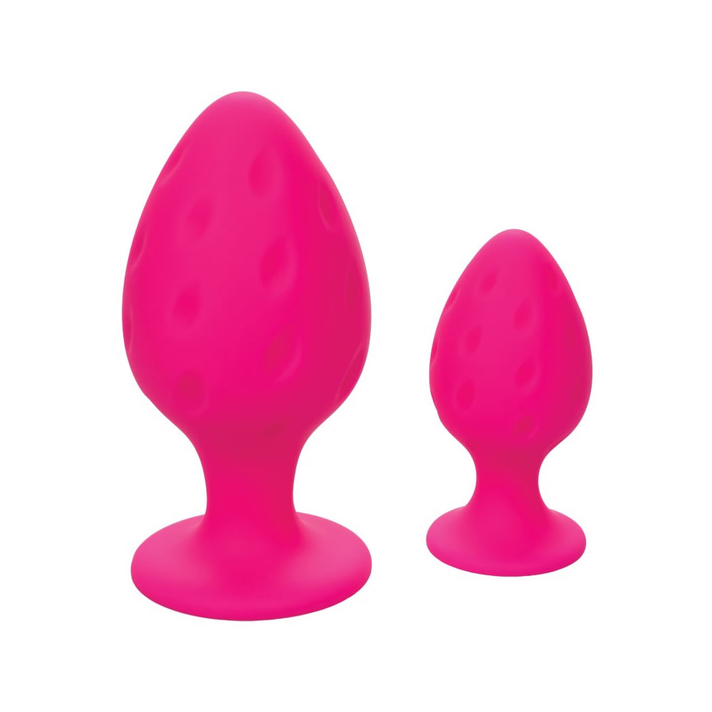 Igraj se! Ta dva analna čepa imata teksturo na površini in čvrsto, razširjeno bazo, ki čepu omogoča, da stoji na ravni gladki površini. Izdelana sta iz telesu prijetnega in varnega silikona. Set vsebuje 2 različno velika analna čepa – manjšega za prvara ziskovanja analnih igric in večjega na naprednejše užitke.
