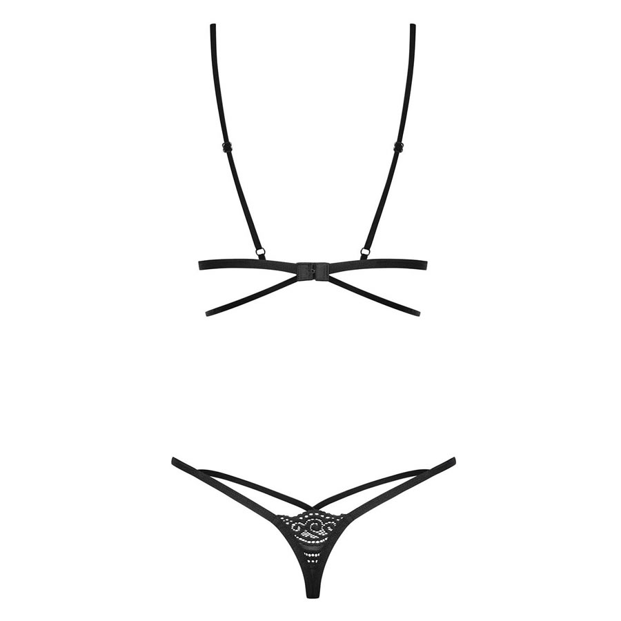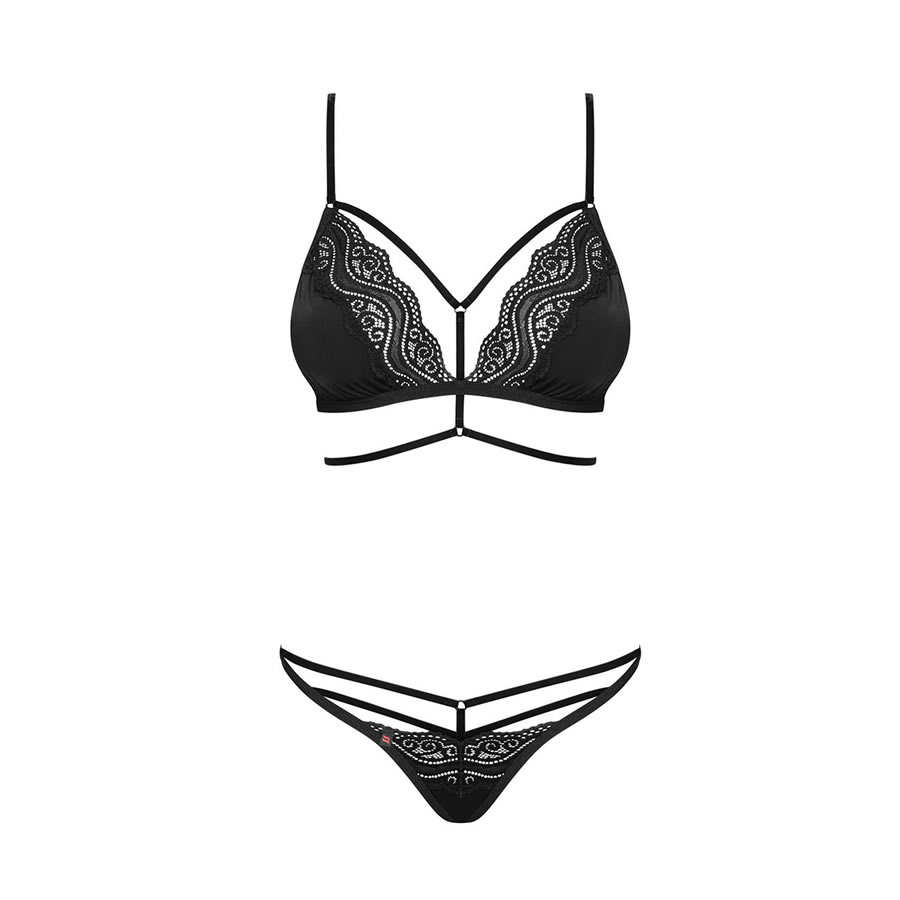 Za vse, ki ljubijo mehkost materiala in posebne detajle. Set je sestavljen iz modrčka in hlačk. Modrček ima mehki košarici brez dodatne opore, izdelani sta iz gladkega, mehkega satena in čipke. Pod košaricama, čez sredino dekolteja in nad prsmi je seksi elastičen trakec. Tanga hlačke so v enakem slogu.