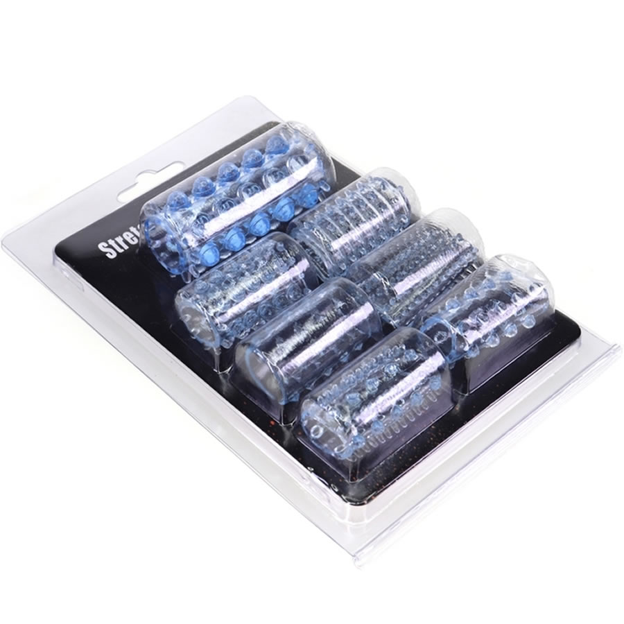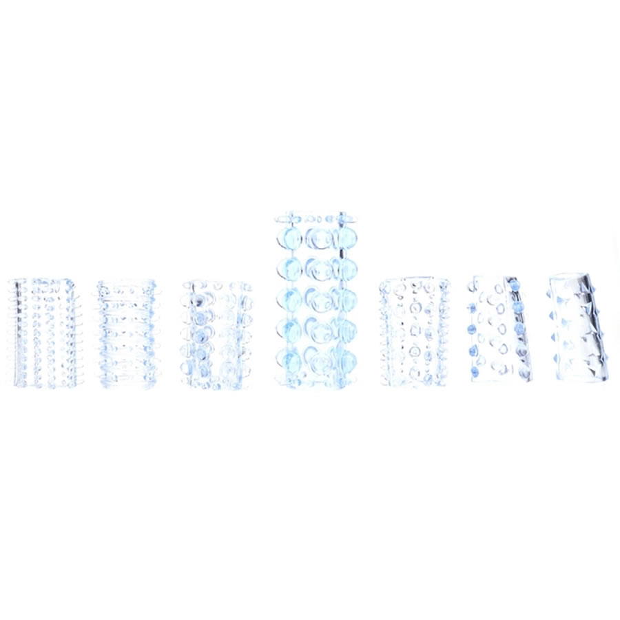Ta set združuje 7 mehkih elastičnih rokavčkov za penis, s katerimi si povečamo debelino spolnega uda. Drobne, mehke izboklinice, kroglice, črtice… na površini rokavčka so tam zato, da ob penetraciji povečajo stimulacijo vagine. Rokavčki so mehki in elastični, da se prilagodijo vsaki velikosti. Set sestavlja 1 večji rokavček in 6 manjših.