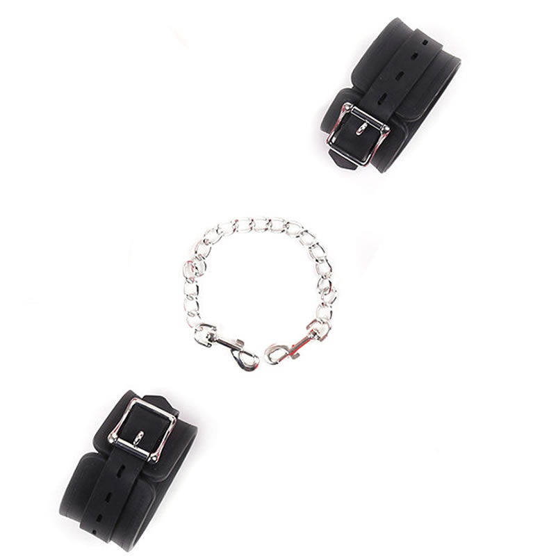 Lisice za zapestja so v celoti izdelane iz silikona. Zapenjajo se s kovinsko zaponko. Med seboj so povezane s srebrno kovinsko verižico s karabinom, da jih lahko povsem ločiš.