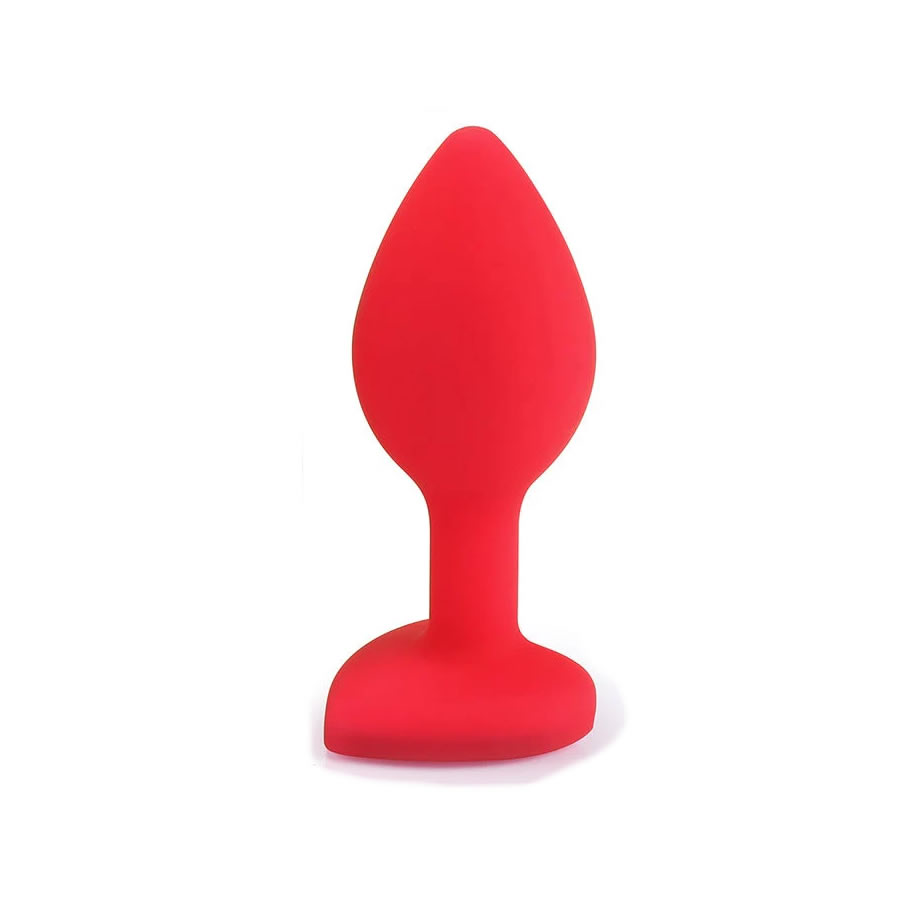 Iz svileno gladkega silikona izdelan analni čep, z razširjeno bazo za varno uporabo in okrasnim diamantom v njegovi bazi.