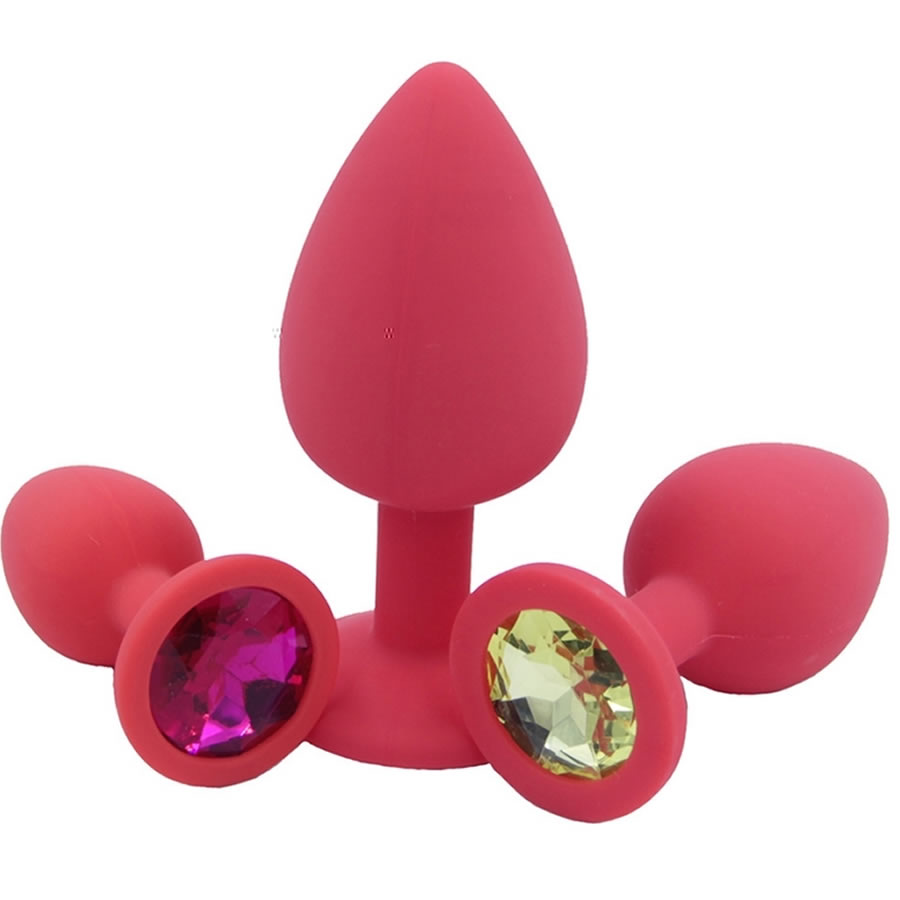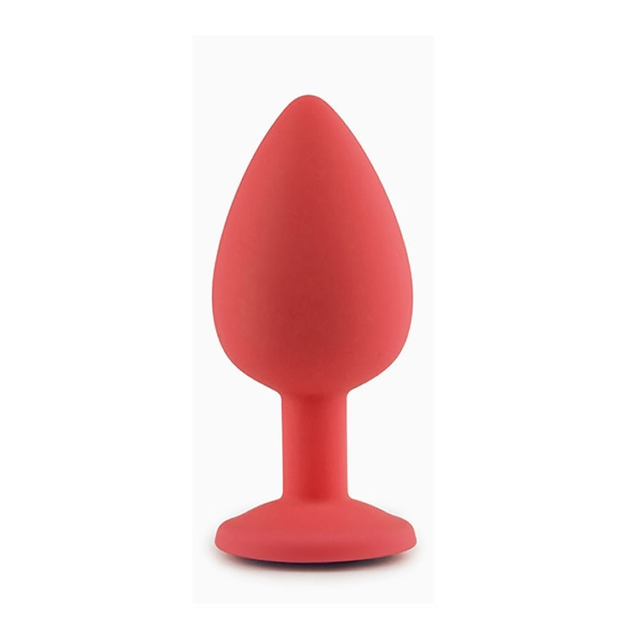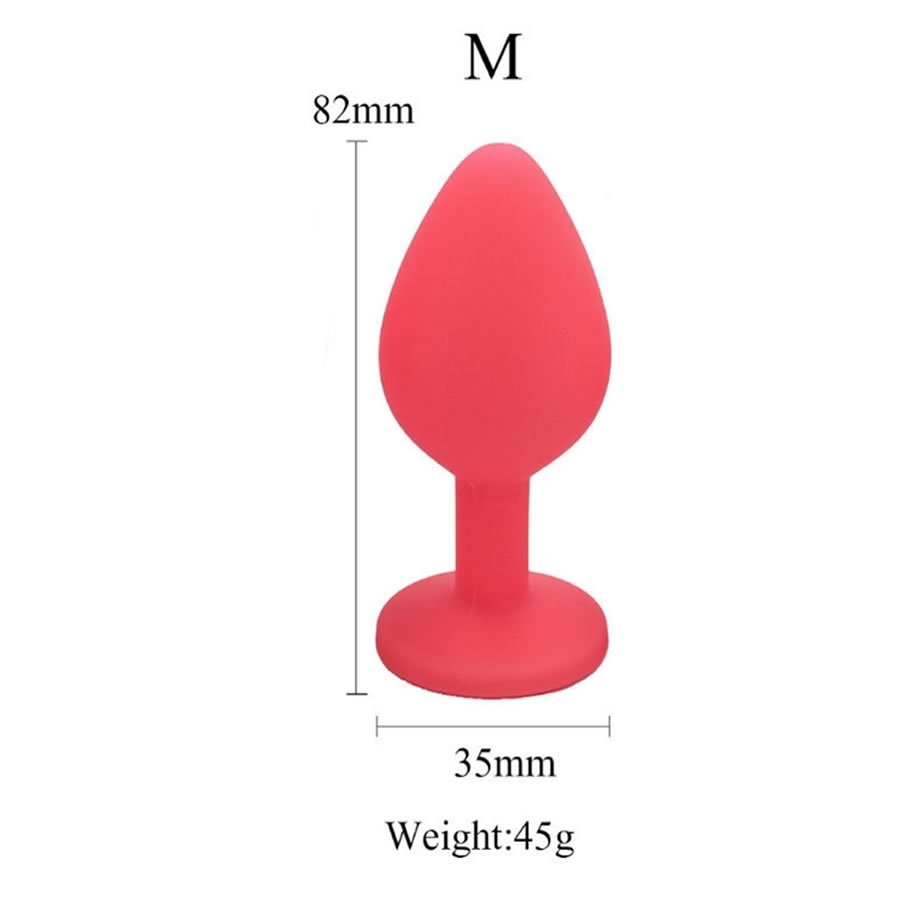 Silikonski analni čep z razširjeno bazo za varno uporabo. Z dekorativnim diamantov na dnu baze.