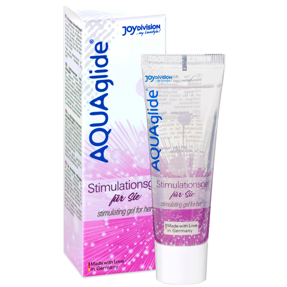 Aquaglide stimulacijski gel intenzivira ženski užitek in zagotovi da je ta dolgo časa trajajoč. Že majhna količina žametno mehkega stimulacijskega gela je dovolj, da se telo in um prepustita senzualni izkušnji. Aquaglide zagotavlja trenutke pulsirajoče strasti in neskončne ure predanosti in fuzije. Milijoni zadovoljnih strank zaupajo v prvovrstno kakovost AQUAglida. Je 100 % “Izdelan z ljubeznijo v Nemčiji”, kristalno čist in visoko produktiven.