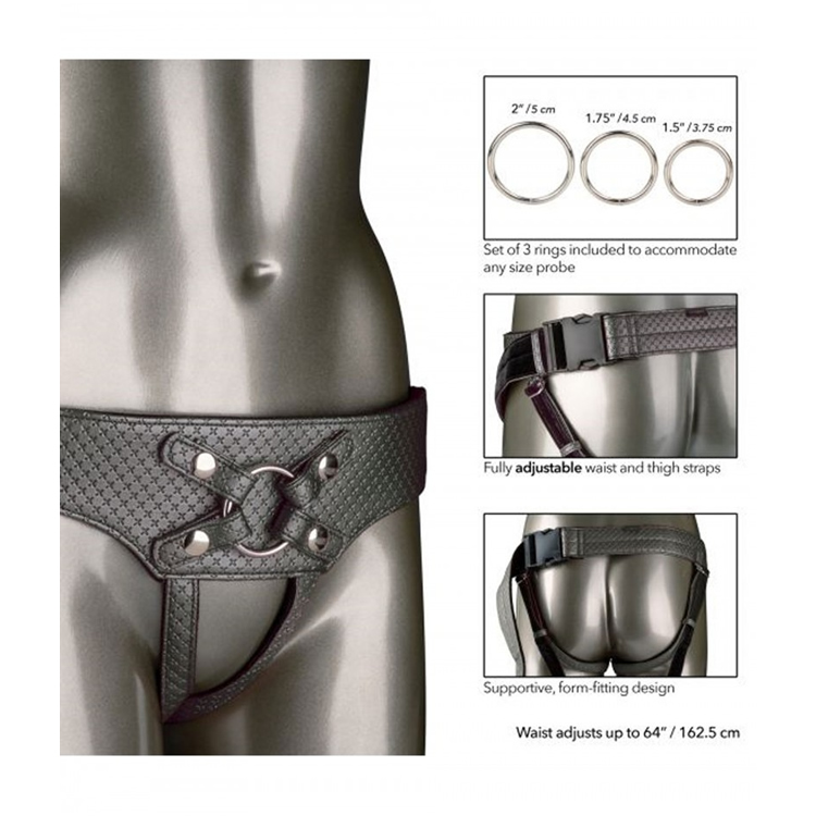 Pripravi se za vznemirljiv užitek in zabavo! Njen kraljevski strap-on-pas pas je izdelan iz veganskega usnja in plišastega, žametnega notranjega dela za popoln nadzor in udobje. “Snap-in ring” sistem omogoča vpenjanje treh različnih velikosti obročkov, da se lahko vpne katerakoli velikost dilda ali analnega čepa. Dizajn s povsem odprtim razkorakom ti dovoli, da se podrediš svojim najbolj erotičnim fantazijam in užitkom.