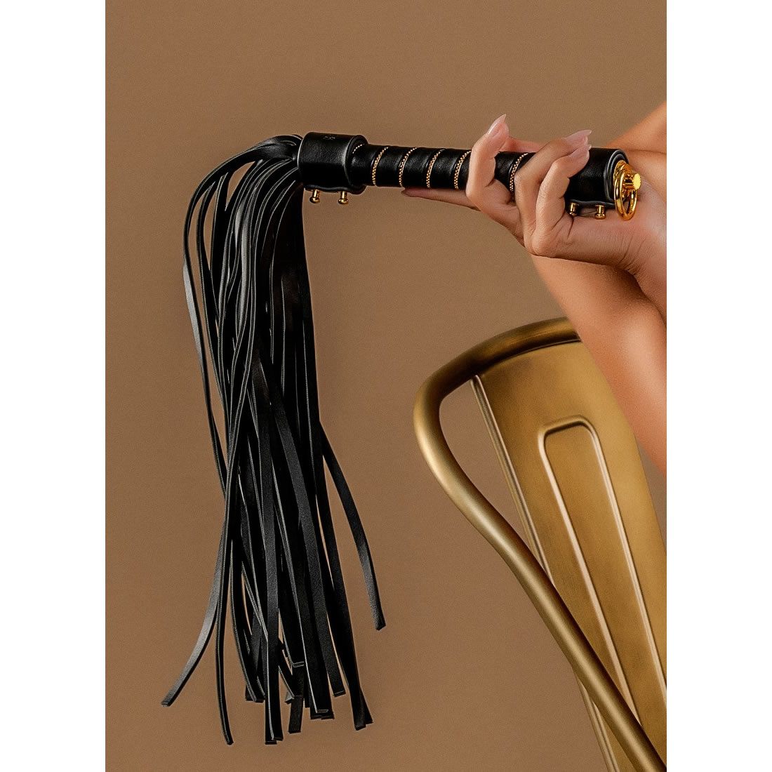 Raziščite bondage igro v slogu z bičem TABOOM z mehkimi resicami. Njegov črno-zlat dizajn izžareva seksipilnost in prefinjenost. Izdelan je iz super mehkega veganskega PU usnja, nudi luksuzen občutek in etično privlačnost. Lahek v rokah a trpežen omogoča natančne in nadzorovane gibe.