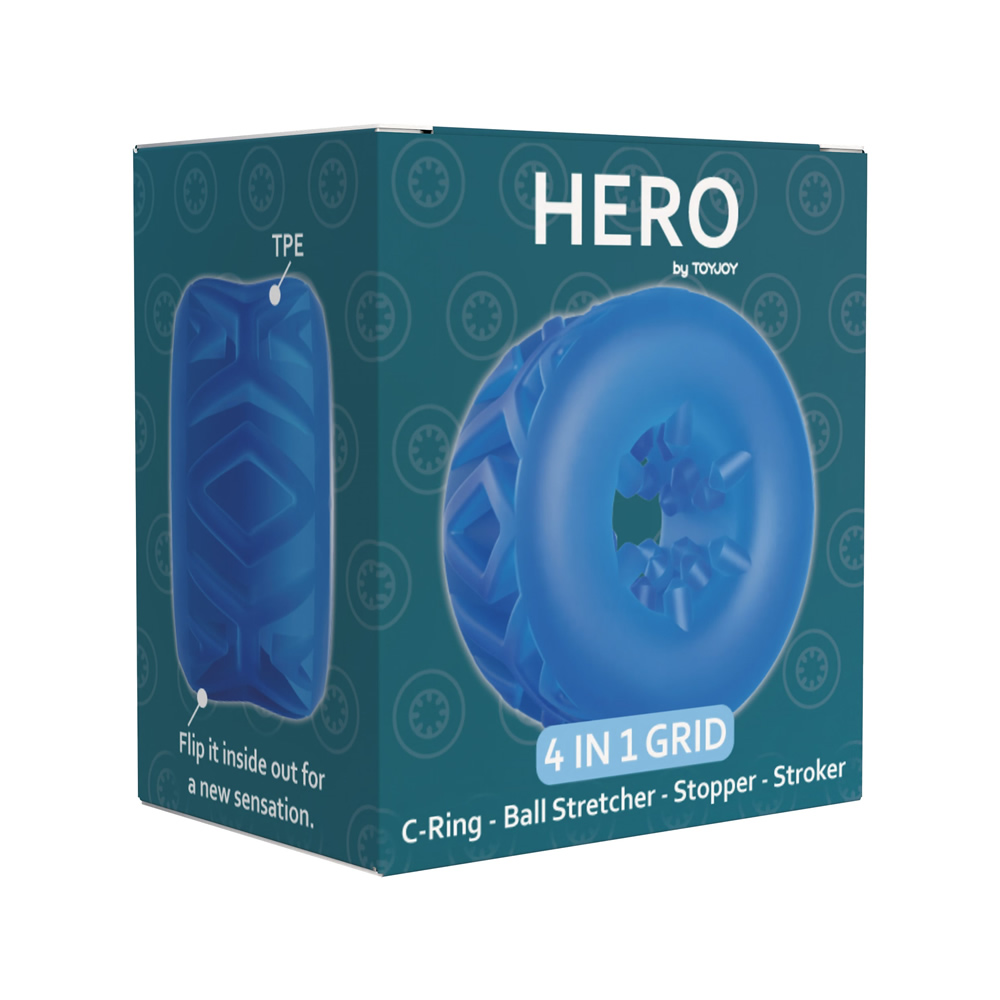 ToyJoy Hero obroč 4-v-1 Grid moder