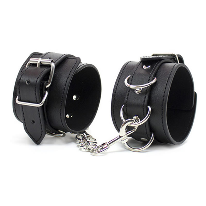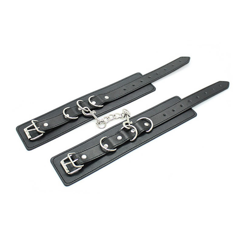Lisice za gležnje so izdelane iz umetnega usnja, s tremi kovinskimi obročki v obliki črke D za vpenjanje v npr. spreader bar. Med seboj so povezane s karabinom in kovinsko verigo.