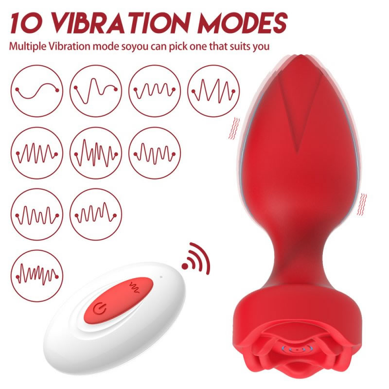 Rose je všečen analni čep izdelan iz telesu varnega silikona. Dno čepa krasi silikonska vrtnica. Njegovo elegantno obliko ustrezno dopolni močan vibracijski motor z 10 vibracijskimi vzorci.
