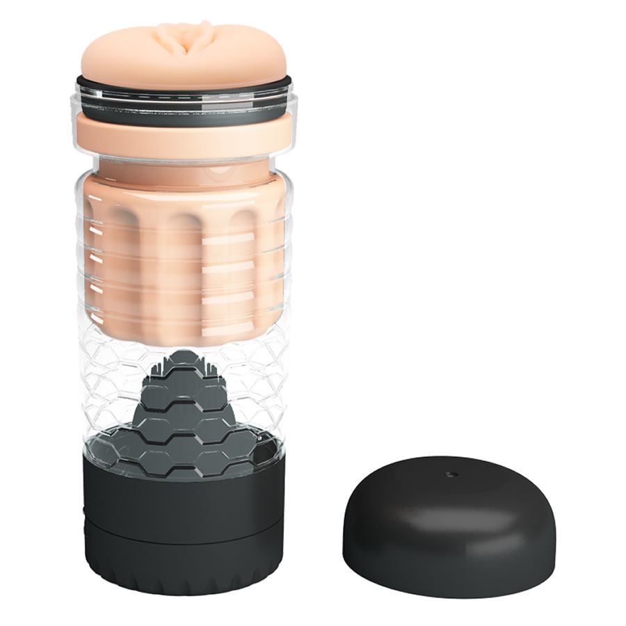 Pri tem vibracijskem masturbatorju lahko nadziraš intenziteto in hitrost tvoje igre. Z masturbacijskim rokavo z notranjo teksturo bo tvoj penis v stimulacijo še preden sploh začneš! Ko vključiš masturbator, bo stimulator na dnu pričel z lizanjem in te masiral v globok, močan vrhunec. Uživaj v udobnem ojemu okrog penisa z masažo do eksplozivnega zaključka.