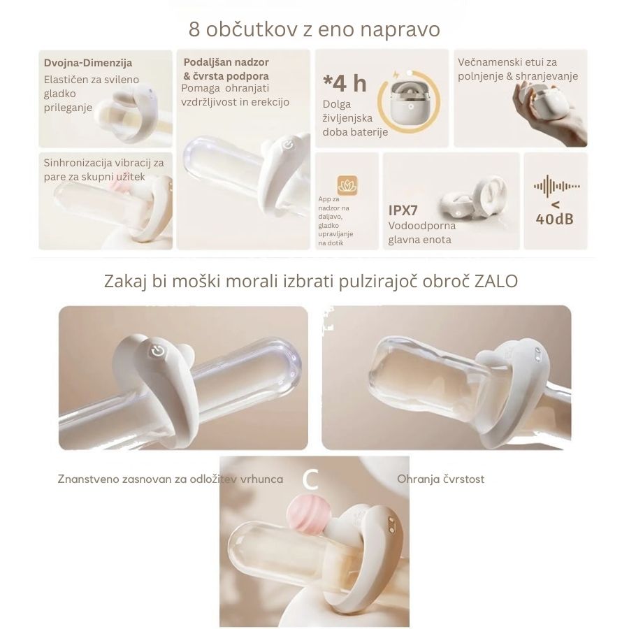 ZALO APIS je več kot le vibracijski obroč za penis – je pametno zasnovan simbol ljubezni za pare, ki želijo poglobiti svojo intimnost. Z napredno tehnologijo, elegantnim dizajnom in izjemno enostavno uporabo je ta obroč prava izbira za skupni užitek, nadzor in povezanost.