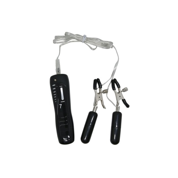 Kovinski ščipalki za bradavičke, z gumijasto oblogo na konici, da ne poškodujeta občutljive kože. S 7 funkcijskim vibratorjem na vsaki ščipalki.