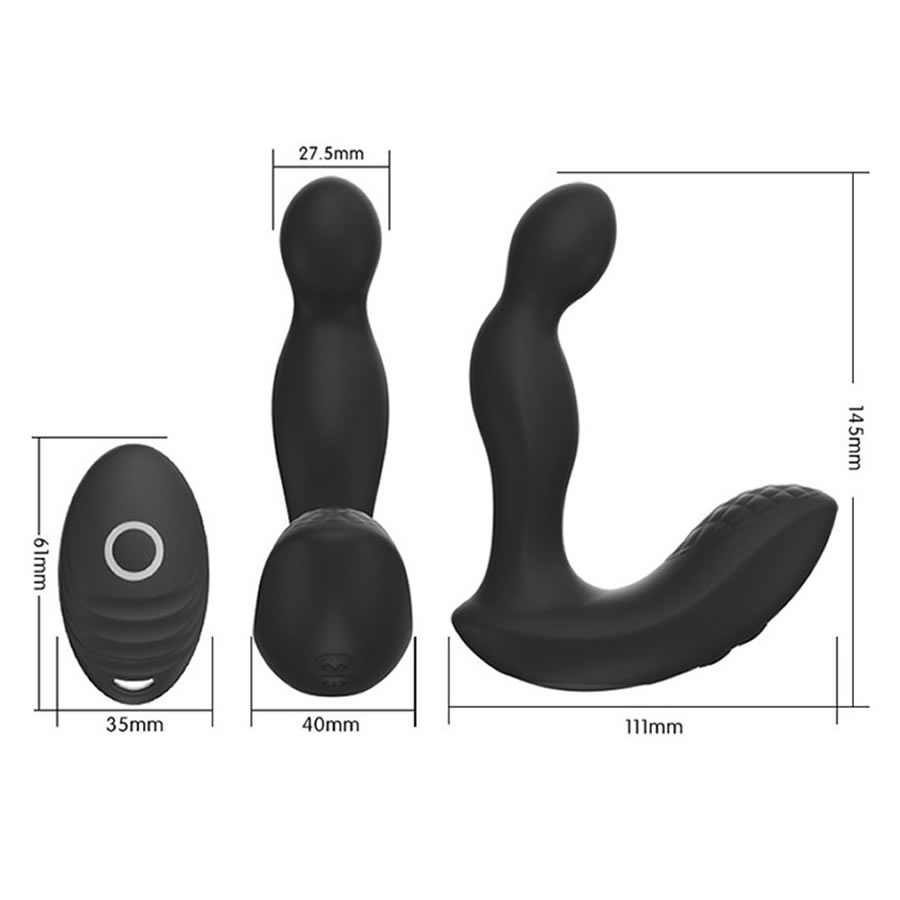 Vibrator za masažo prostate s stimulatorjem presredka je izdelan iz koži prijaznega silikona. Maser prostate vibrira in pulsira v 10 vibracijskih ritmih. Upravlja se ga preko daljinskega upravljalnika. Napajanje vibratorja je preko vgrajene akumulatorske baterije.