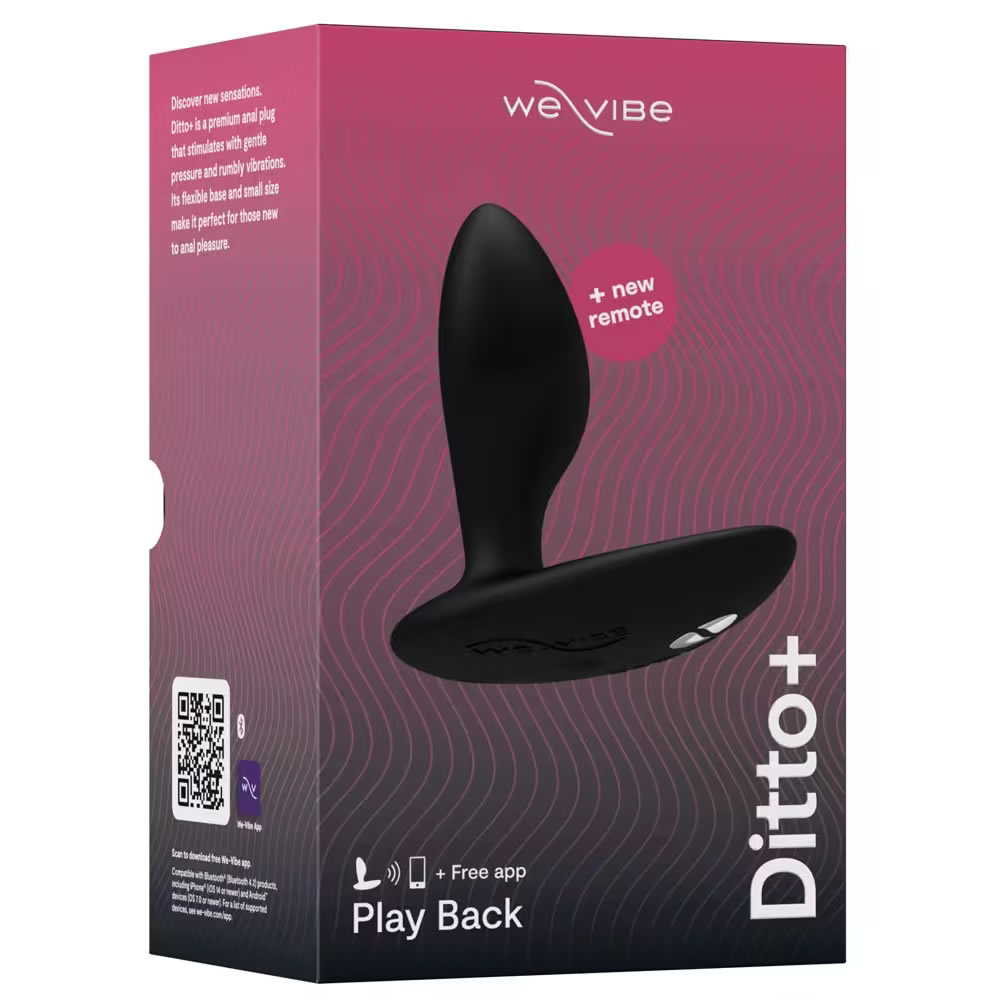 Idealno oblikovan vibrirajoči analni čep Ditto+ znamke We-Vibe s popolno obliko za enostavno vstavljanje in popoln užitek. Prilagodljiv v vratu za popoln oprijem in prileganje med vsemi gibi. Izdelan iz svilnato mehkega silikona za maksimalno udobje. Tiho nudi užitek z 10 načini globokega vibriranja. Tudi v kadi in pod tušem, saj je vodoodporen.